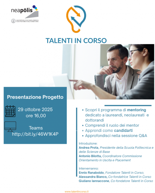 Politecnica e delle Scienze di Base e la libera associazione di professionisti volontari Talenti in corso.